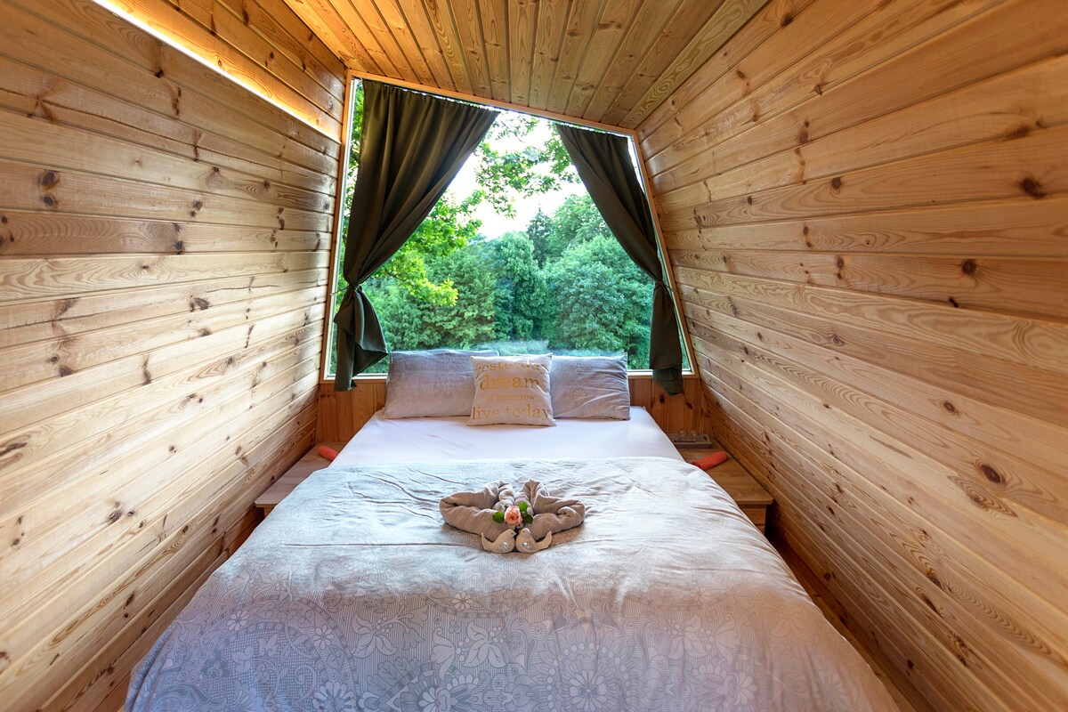 在A房子裡,您可以在木屋頂下找到一個配有牀單和記憶泡沫的帳篷,讓您在木屋頂下享受寧靜的夜晚睡眠。 以稍微不同的方式體驗露營,無需搭建帳篷。 帳篷可容納2位成人。 此房源不允許寵物入住。