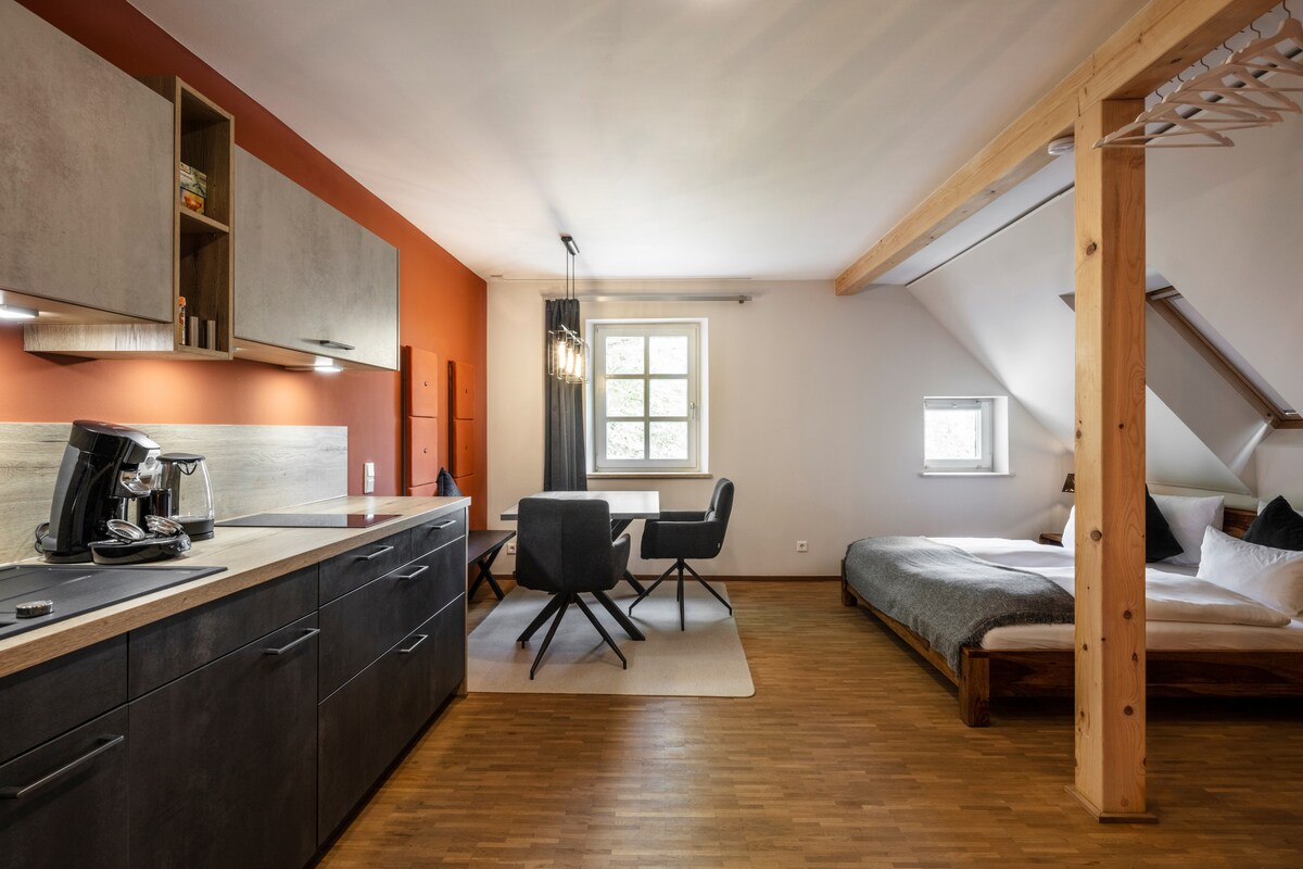 STILVOLL WOHNEN: Modernes Studioapartment im Herzen von Schwandorf. Ihr perfekter Ausgangspunkt für Erkundungstouren durch die Stadt und Umgebung.