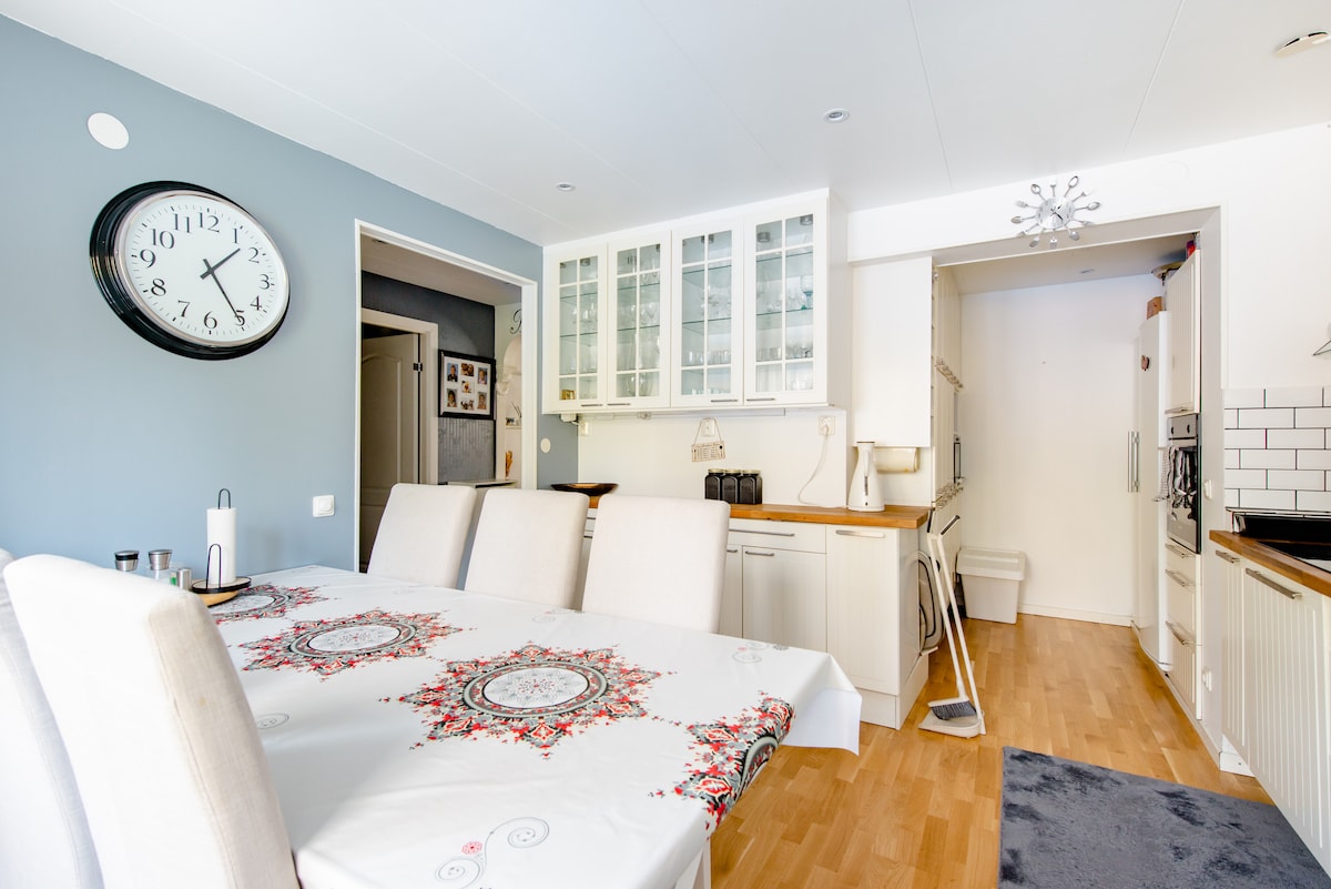 這間120平方公尺的兩層連棟房屋非常適合家庭、工人、團體或計劃在斯德哥爾摩長期住宿的人士。 房子提供充足的空間和簡單實用的日常生活所需的一切。 房子一樓有開放式平面圖,良好的社交區域。 樓上有三間臥室,讓您享有最佳的安靜祥和。 房源設備齊全,包括廚房用具、床單、毛巾和基本用品,讓您住得舒適自在。