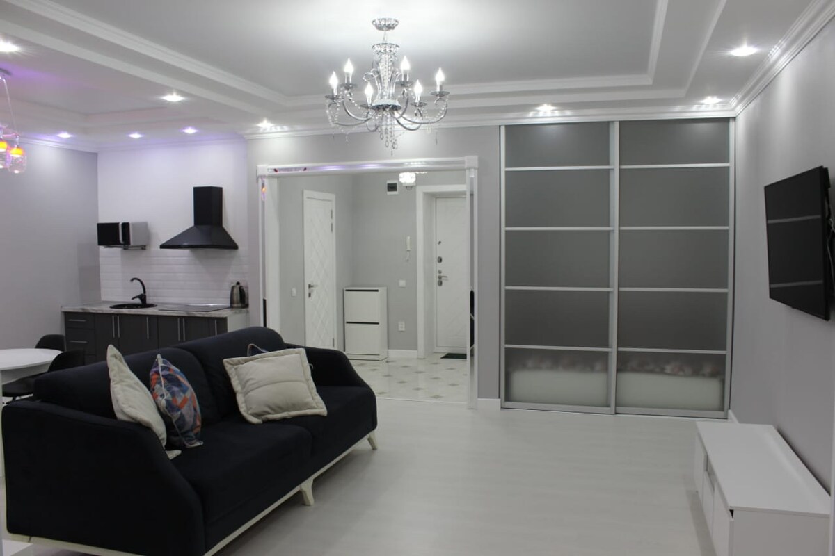 位於市中心一棟新建築內的時尚豪華公寓,位於賈耶克河( Zhayyk River )洪水平原的岸邊。 從矯形牀墊到雪白浴袍和拖鞋,提供優質住宿所需的一切。 配備最完整的Netflix訂閱的高級系列智慧電視、Kinopoisk、YouTube 已安裝飲用水過濾器,無需攜帶水。 位置方便,市中心步行即可抵達冰宮、市中心購物中心(百貨商店)、豐田汽車經銷商和大眾汽車中心。