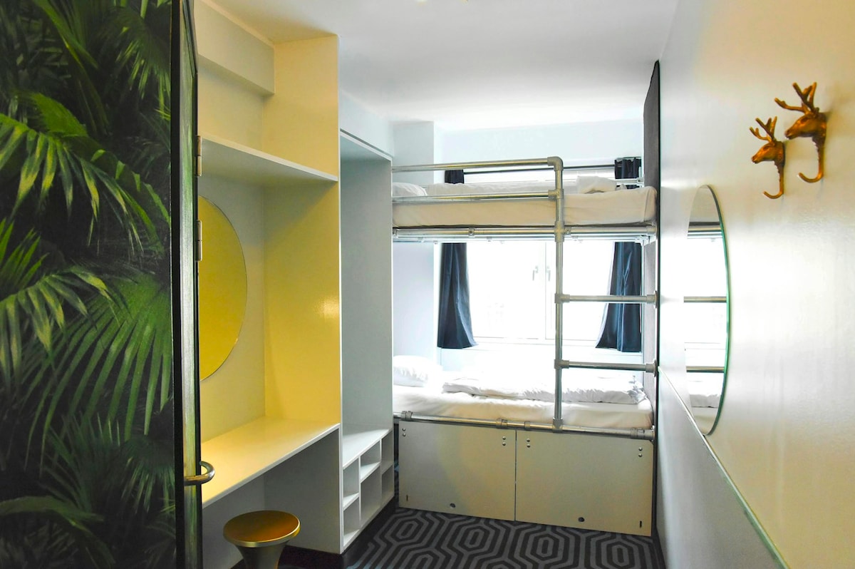 在Generator Copenhagen的共用女生宿舍預訂一張牀(或更多) ,專為女性設計。 這個房間有3張上下舖( 6張牀)和獨立浴室,增加了舒適度。 每個上下舖都配有個人燈具、層架、USB充電站和牀下儲物櫃。 提供吹風機、枕頭、被子和牀單。 前臺提供毛巾,費用低廉。 此房間僅供18歲及以上的房客入住。