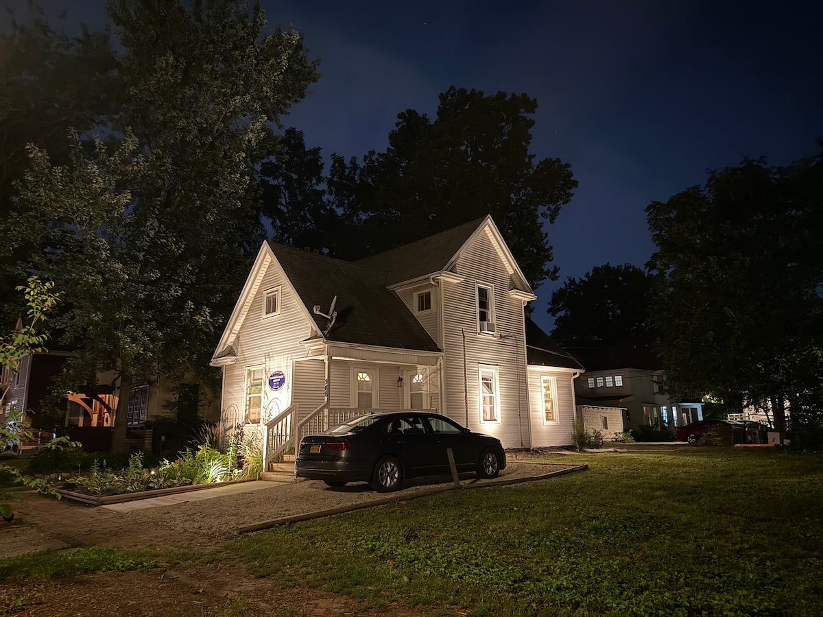 Next to the heart of the UIUC campus and surrounded by mature trees, this spacious, serene guest suite offers a relaxing stay. It has a private entrance with a foyer, a studio style main room and a bathroom. Sleeps two comfortably with a queen bed and a sofa (not a pull-out) for lounging. No TV, washer, or dryer. No kitchenette, but a microwave, mini fridge, and coffee maker are provided. Snacks and coffee pods provided. Not accessible for limited mobility. No parties and no smoking.