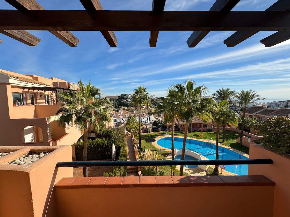 Have fun with the whole family in this elegant and cozy place. Large recently renovated apartment that can accommodate up to 6 people. Located in Riviera del Sol, one of the best areas of the Costa del Sol, right in the middle between Fuengirola and Marbella, and 30 minutes from Malaga Airport. Very close to restaurants, shops, beaches and golf courses. POOL SEASON: From June 1 to September 30. Licence N°VFT/MA/632744