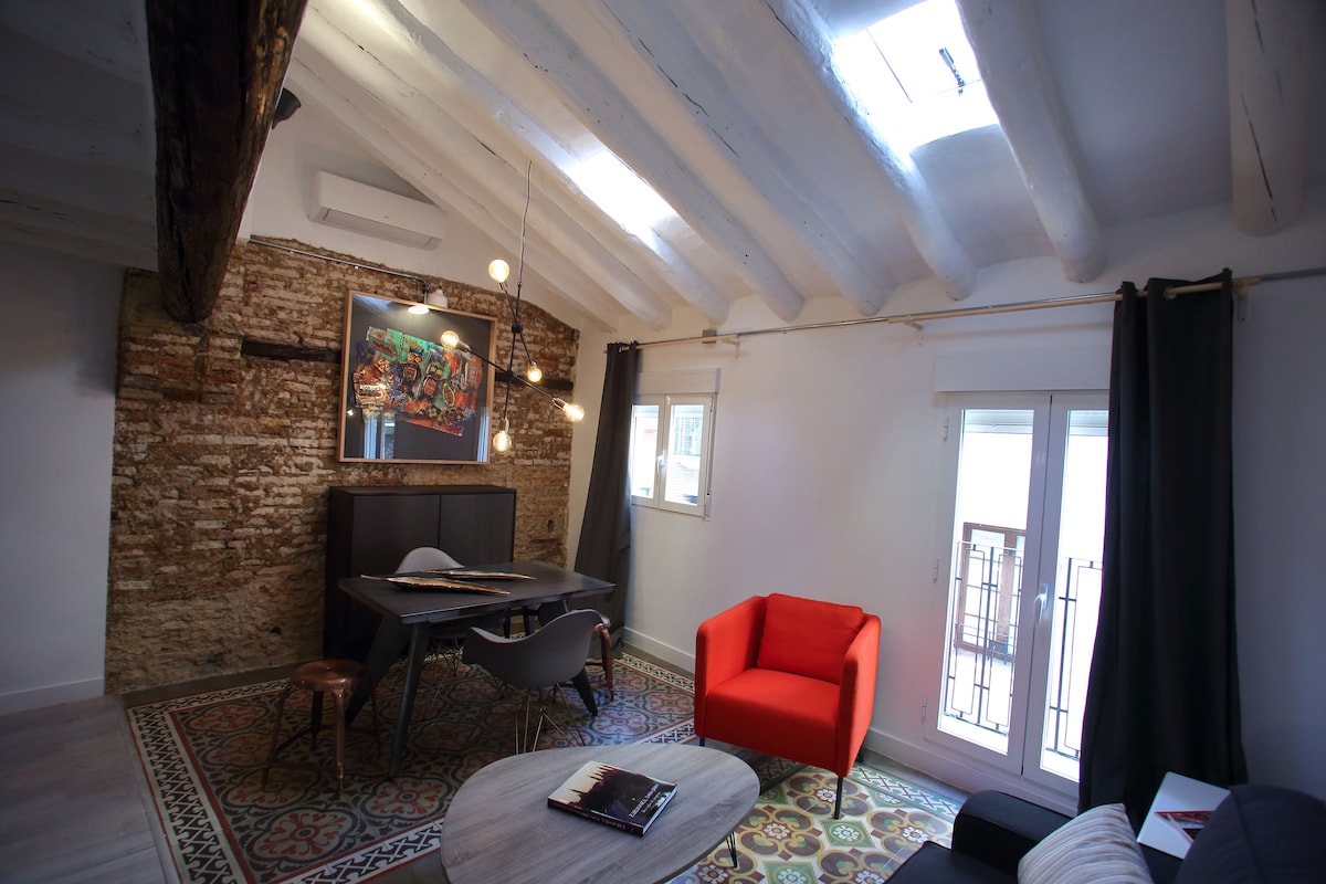 位於薩拉戈薩舊城區聖保羅區中心的寬敞舒適公寓,面積75平方公尺,附設30平方公尺的私人露臺。經過修復後,保留了原始的木樑,賦予其獨特的魅力。非常適合情侶和朋友入住。配有空調、WiFi 和私人付費停車位(視情況而定)。距離皮拉爾、拉塞奧、中央市場、阿爾哈費里亞和塔佩奧區域的El Tubo僅10分鐘路程。距離 Mercadona 超市 100 公尺。