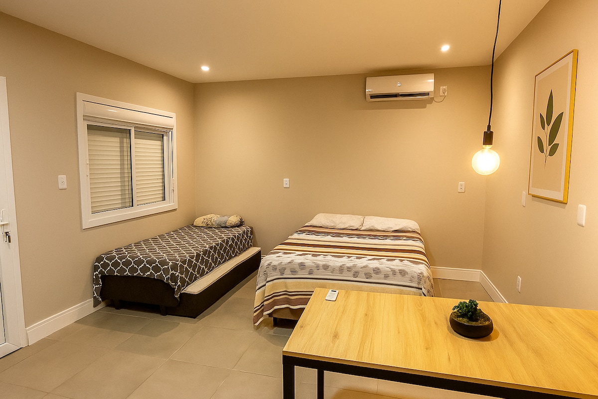 整套房源,隨時歡迎您入住! 有空調、設備齊全的廚房、功能齊全的浴室、工作區、露臺和烤肉架。 位置優越,靠近Santa Casa de Uruguaiana醫院、藥局和市場。 尋求舒適、實用和幸福的人的理想住宿地點。 可使用Churrasco na Brasa燒烤的側面。