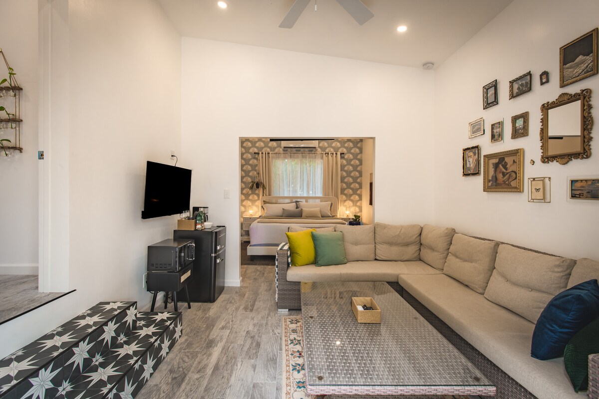 Welcome to your tropical retreat! This brand-new 1-bed, 1-bath guesthouse + bonus yoga room and private patio is your perfect island escape. Nestled in the heart of St. Croix, this spacious getaway offers modern amenities with beautiful outdoor spaces for ultimate relaxation. Centrally located and just 1.7 miles from the Christiansted boardwalk, it’s perfect for exploring beaches, shops, and dining. Unwind or stay active—this cozy retreat brings you the best of the Caribbean.