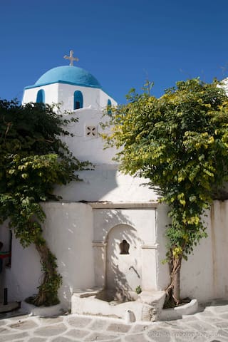 The location is ideal: tucked just a little away from the port in a quiet, local neighborhood, yet only a quick 5-minute walk to Parikia. Super convenient and peaceful.