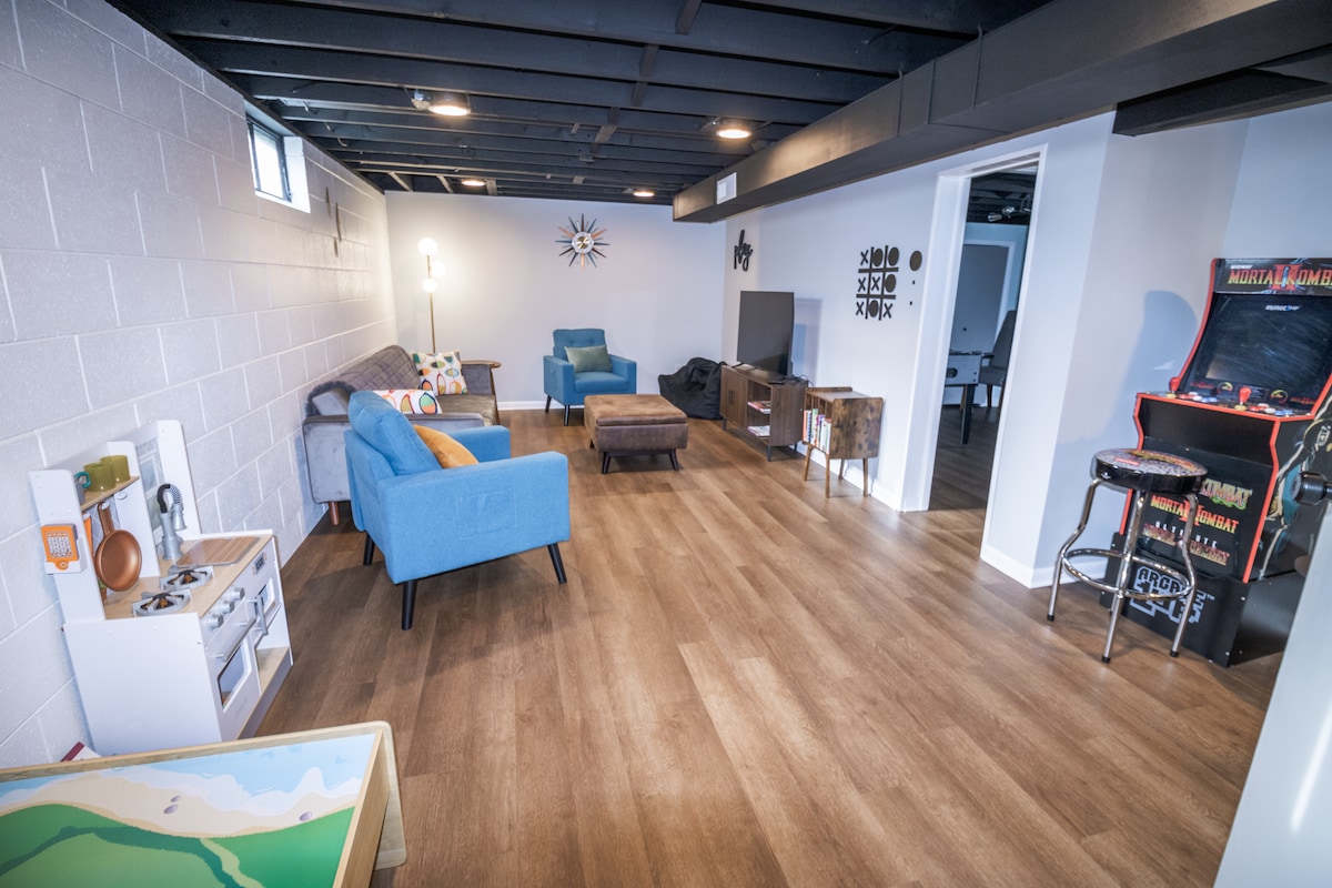 歡迎來到我們的湖畔樂趣之家!!如果您和您的家人正在尋找一個高級的地方,為全家提供有趣的設施,同時非常靠近密歇根湖、湖畔市中心和Muskegon市中心,這是適合您的地方! ! 在舒適的床上享受美好的夜晚睡眠,在沙發上放鬆身心,觀看您最喜愛的節目或電影,在我們設備齊全的廚師廚房烹飪家庭餐點,或進入我們已完成的地下室,玩一些街機遊戲、空中曲棍球或放鬆身心。