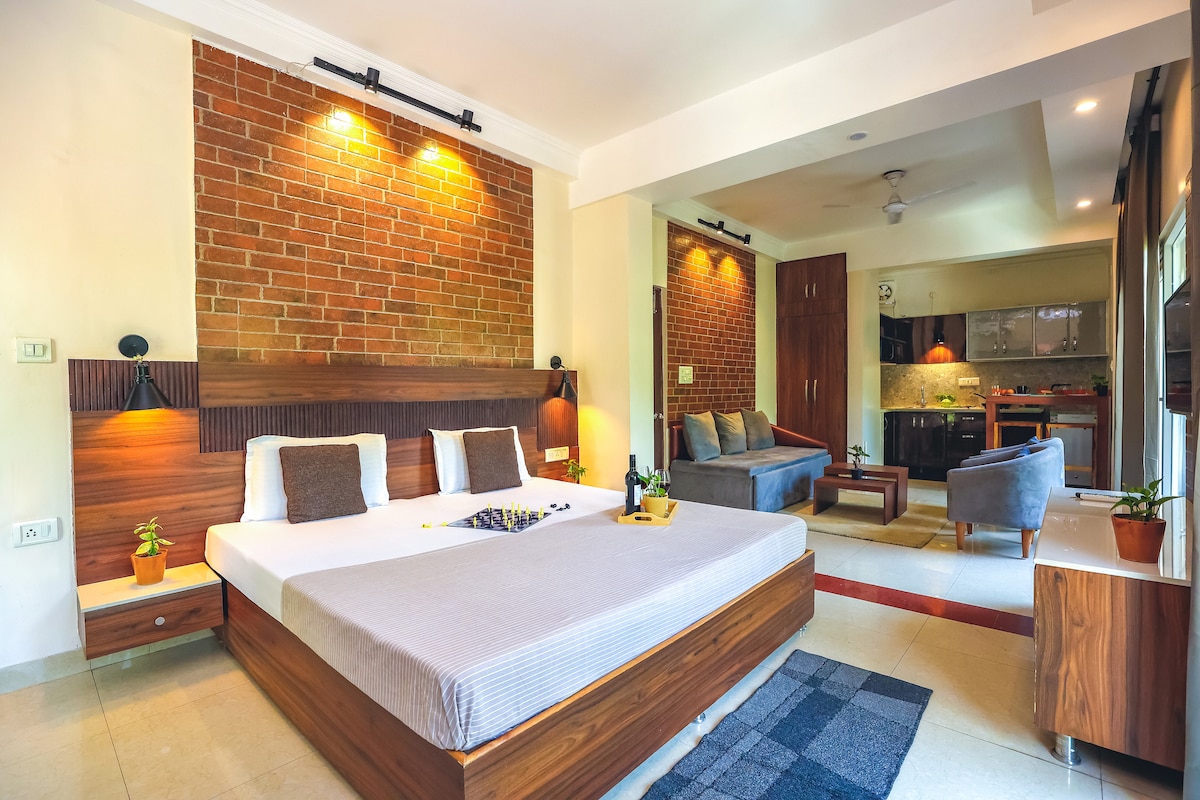 露臺房位於新德里市中心。 提供寬敞的臥室,配有加大雙人床和全景景觀。 套房內浴室。大休息區可俯瞰露台花園。 房源配有開放式家具廚房。休息區開放至藤架和露臺花園。整個住宿體驗提供從室內到室外的互動融合。 附近有許多旅遊景點。 這個空間經過精心設計,方便、易用和舒適,並有隱私。