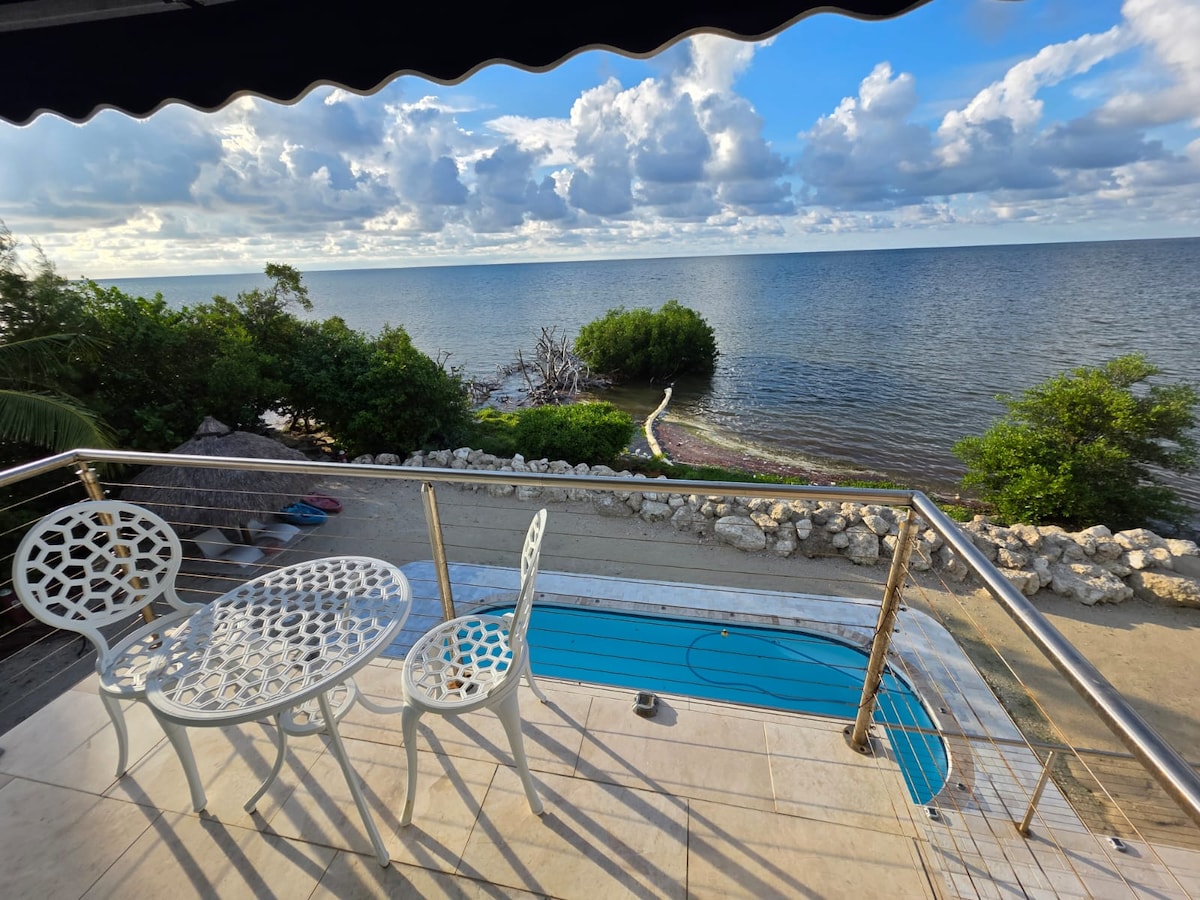 溫水泳池每週150美元。 體驗放鬆的島嶼奢華,在房源的一個街區內沒有鄰居,位於中間鑰匙的Grassy Key。 該房源坐落在大西洋正上,一覽無遺的景觀,坐落在私人土地上,旨在從每個樓層最大限度地欣賞海景。 無論您是想在陽台欣賞日出,在提基小屋下用餐,還是在海濱泳池旁邊聆聽衝浪,這都是與親朋好友重新聯繫的好地方。