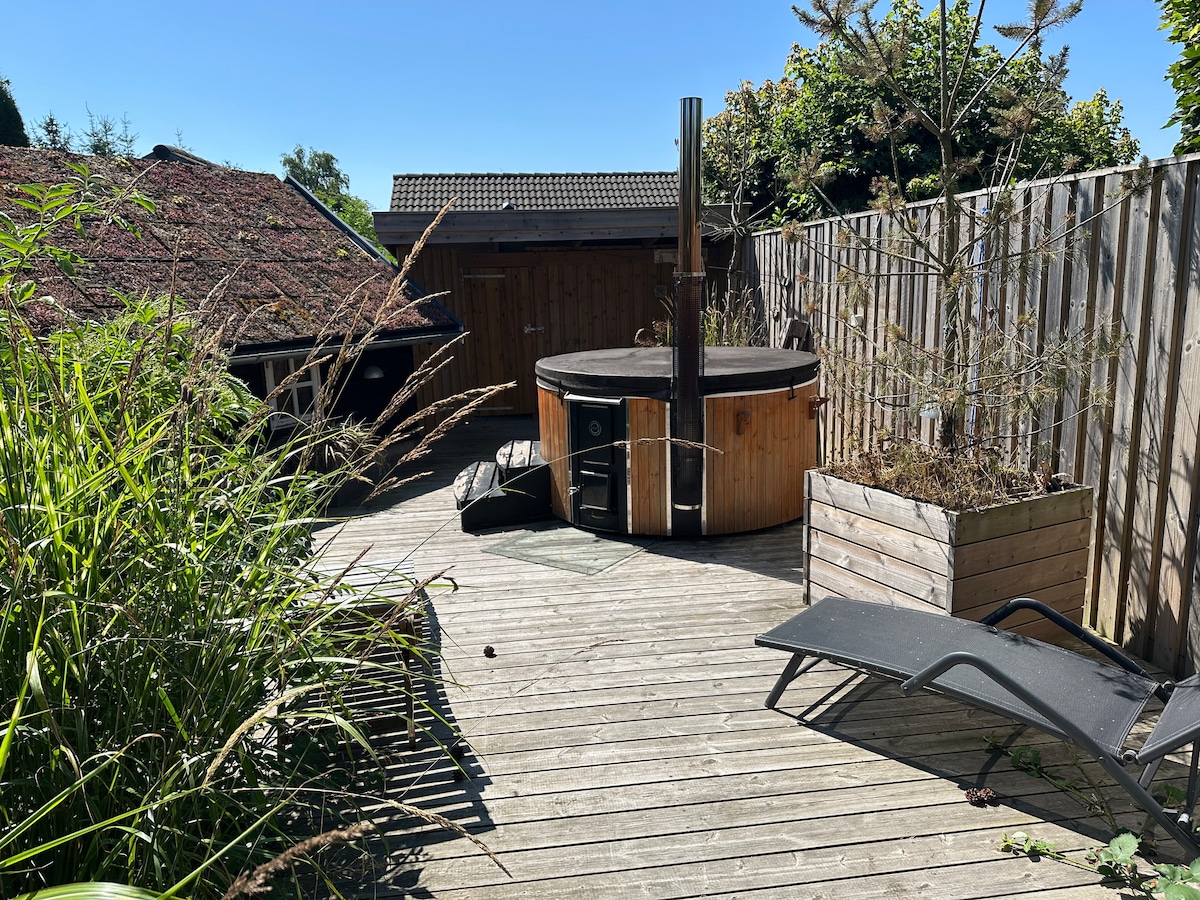 私人陽光花園。 兩個大型陽光露臺、帶熱水的室外淋浴間、帶按摩浴缸的大型荒野浴缸。 距離沙灘步行僅 8 分鐘。 房子較舊,但新翻修過,有新的廚房、浴室、家具和新床。 圍欄花園,適合愛犬和兒童 兩間臥室,配有160 x 200公分的床。 廚房設備齊全,您會找到最基本的東西,如香料、咖啡等。 這裡非常特別安靜,有機會在花園中醒來時看到鹿。 距離哥本哈根90分鐘