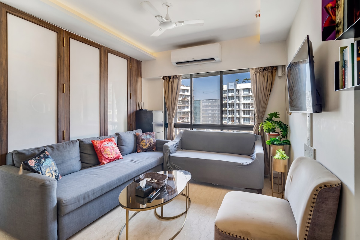 Wake up to rhapsody of chirping birds, gentle sea breeze & magnificent sunrise surrounded by lush greenery. Silver BEACH -5 min Walk Aksa BEACH-15 min drive Smart TVs , AC, Wi-Fi ,a Bath tub. Spend cozy afternoons in the balcony with a book and a cup of coffee ,amidst greenery . Stroll on the beach , Explore beautiful landscaped gardens , Pool & Quaint cafe of the luxury apartment complex , Set in peaceful & tropical neighbourhood of Madh Island Zomato Swiggy & Blinkit delivers