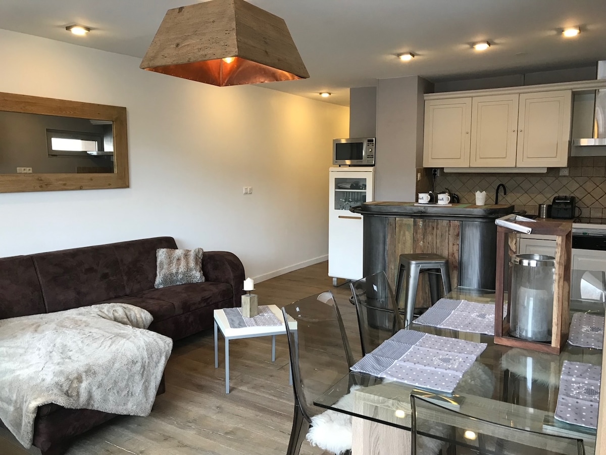 Appartement refait à neuf, cosy et confortable. Situé plein sud, il dispose d'un grand balcon. Calme car situé à 7 mn à pieds du centre, accès facile aux pistes de ski par navette gratuite qui passe très souvent. Retour skis aux pieds par 2 pistes. Supermarché, loueur de matériel de ski juste en dessous de la résidence. La ferme et ses produits frais sont à 5 minutes à pieds. Il dispose d'une chambre avec un grand lit, une mezzanine en 2 espaces : 1 grand lit et placards, 2 petits lits.