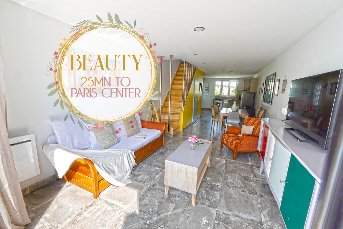我們迷人的獨立小屋位於寧靜的環境中,經過全面翻新(2023 年),是追求寧靜和舒適的理想之地。 它位於一個住宅區,因街道兩旁的美麗別墅而被稱為小多維爾。 乘火車 35 分鐘即可抵達巴黎(步行 2 分鐘即可抵達火車站),方便快捷地體驗巴黎的文化生活。 早餐免費!