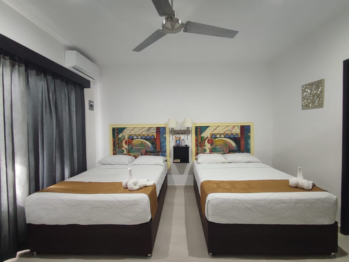 Amplias y cómodas para vivir una experiencia “KIIN WAYEB” Nuestras habitaciones más exclusivas están diseñadas para ofrecerte una experiencia inolvidable, donde el confort y el lujo se fusionan con el encanto de la cultura yucateca. Estas habitaciones están equipadas con dos cómodas camas matrimoniales, donde podrás descansar y despertar renovado, escritorio, Smart TV, Aire Acondicionado, Agua Caliente y una Hamaca para descansar por las tardes al clásico estilo yucateco.