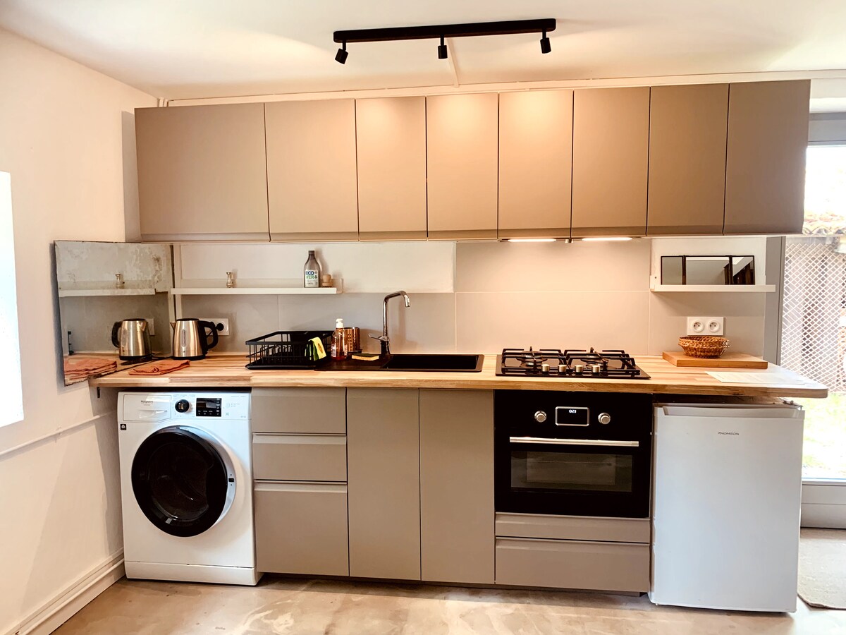 我位於歷史悠久的奧布森( Aubusson )中心的房子的一樓歡迎您。 這是一間 30 平方公尺的無菸住宿空間,配有廚房和客廳。 設備齊全的廚房可俯瞰小型私人庭院。 客廳可供3人入住, 140配有一張雙人牀和一張單人牀、WiFi和電視。 一樓的浴室是私人的,但位於客廳外面,只有房子入口處的廁所是共用的。