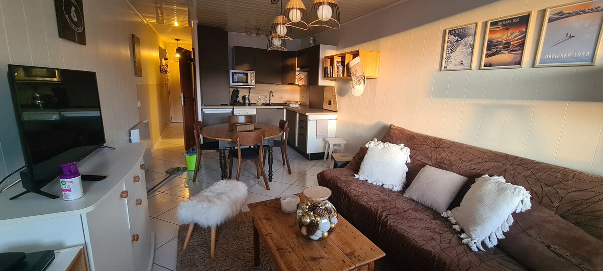 我們出租位於PSV 1600 Cortina 3住宅區頂樓的48平方公尺(6人)公寓。 公寓位於度假村中心,擁有朝南陽台(可在此放鬆身心,享用山景美食),客廳內有一張沙發床,一個山景區(雙層床),朝北臥室內有一張雙人床,可在此俯瞰瓦盧伊斯 (Vallouise) 和佩爾武 (Pelvoux) 山景。享受家庭度假村的眾多活動!可提供封閉式停車位(非常適合存放自行車)