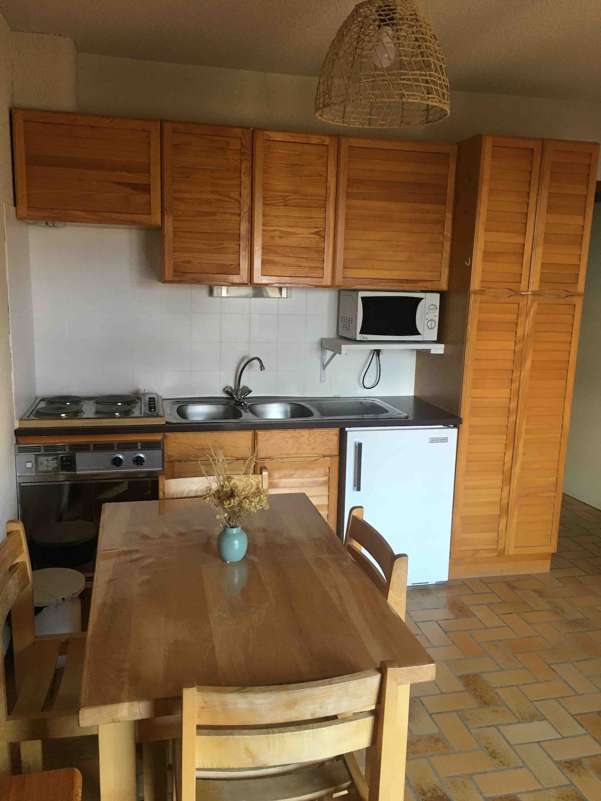 塞爾-雪瓦利爾(Serre-Chevalier)位於度假村的中心,靠近滑雪道:我們的單間公寓面積為27平方公尺,擁有寬敞的客廳,陽台朝南,可俯瞰滑雪道。到了晚上,客廳的沙發會變成雙人床,而小隔間則提供兩張上下舖床。浴室配有浴缸和廁所。設備齊全的廚房最近才剛翻新。床單和毛巾包括在內。