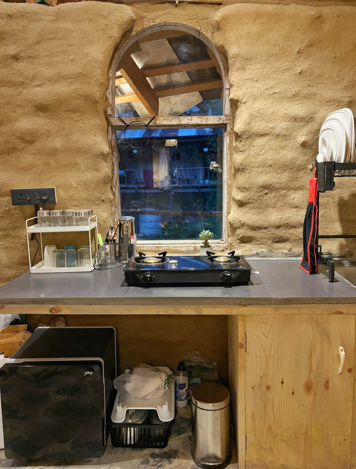 Welcome to Jankis Commune. Jankis is Manali's 1st earth-bag mud home, hand crafted by Ar. Mandav Bhardwaj, with an objective to promote the use of natural building materials for mountain homes. Perfect for a couple stay or solo, this cosy haven is equipped with all basic necessities ensuring home like comfort. It is located in Old Manali near Manu Temple & has parking space available. It is an independent home with front garden space & Mountain view so you can immerse yourself in nature.