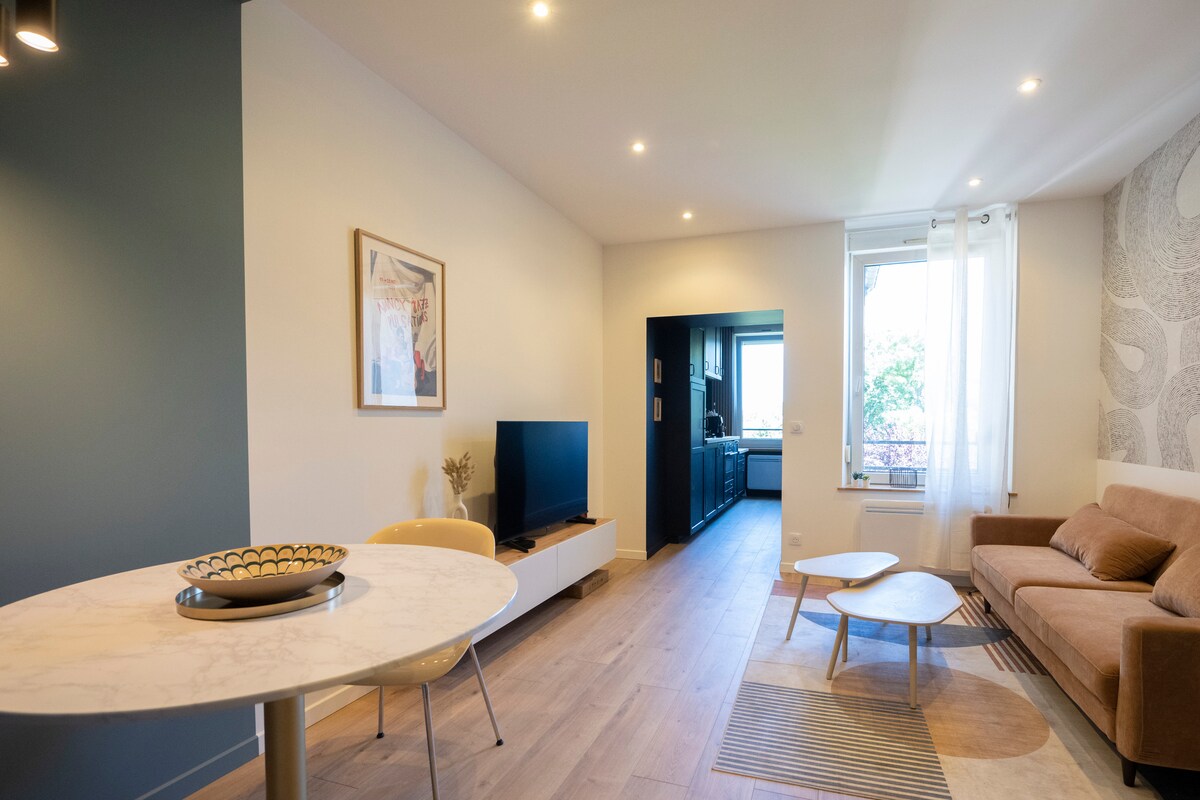 Welcome to Nancy BnB thermal 1! Located on the raised first floor, this modern apartment is designed and equipped to offer you all the comfort you need. 🚅The apartment is less than a 15-minute walk from the train station and less than a 10-minute walk from the new thermal center. 🗽 What's more, it's a 20-minute walk from Place Stanislas. We look forward to welcoming you!