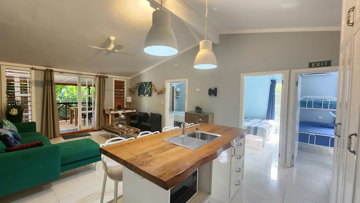 Wake up to gentle waves, lush gardens, and your own private pool • Fully self-contained home for you alone — no shared spaces, complete 2.5 acres of privacy. • 2 ensuite bedrooms, open-plan living, air-con throughout + pool views. • Lagoon access just 2 min drive away; snorkel, or wander the garden under palms. • Only a 2-minute drive to Koro Sun Resort restaurants and bars, and 20 min drive to Savusavu town centre; quiet, tucked-away, yet close to restaurants, bars and dive operators.