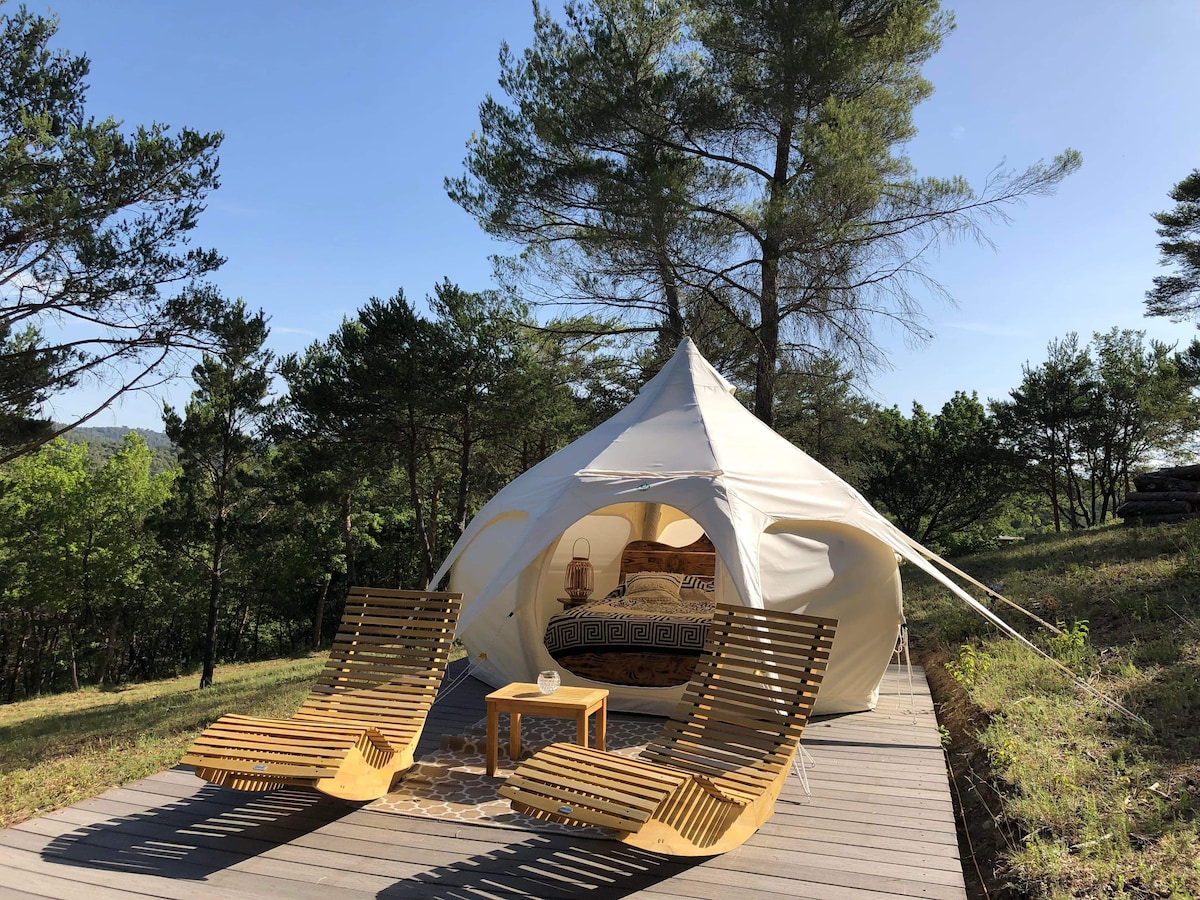 Entre mer et montagne, sur la route Napoléon, faites-une halte en pleine nature dans ce lodge safari toilé de 27m². En couple, en famille ou entre amis, préparez-vous au "glamping", le camping de luxe insolite ! Une expérience dépaysante et unique à partager avec vos proches. Toute l'aventure du camping avec le confort en plus ! Profitez de votre terrasse privative, détendez-vous dans le hamac ou sur les chaises longues et respirez l'air frais de la montagne. Un vrai retour aux sources !
