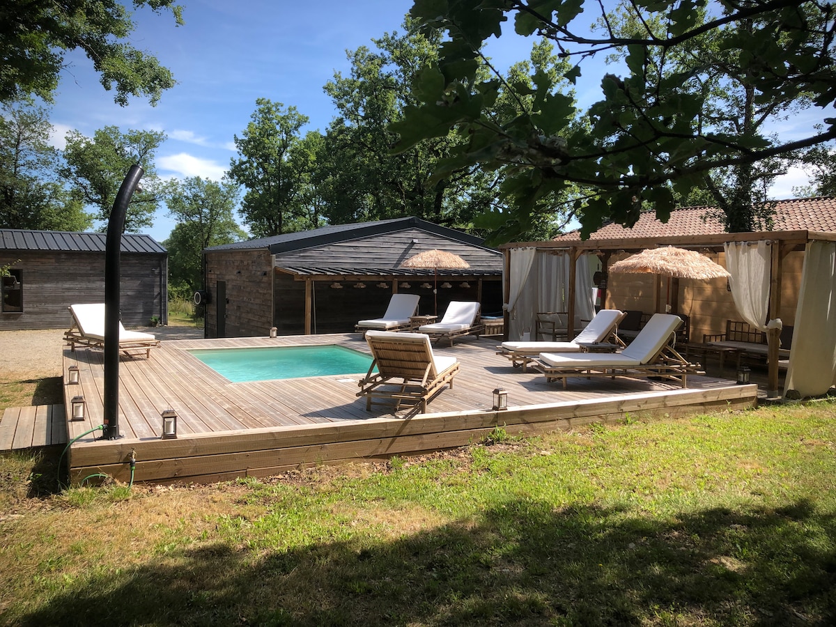綠潟湖(Lagon vert)度假屋坐落在魁爾西(Quercy)高原的樹林中,為您提供一個舒適的空間,讓您享受片刻的寧靜與放鬆。北歐浴池、法國滾球、家庭劇院都在計畫中! 這是一個建於 2021 年的小屋,有一個大型有頂露臺,可俯瞰大自然。它由兩間配有加大雙人床的臥室、一間40平方公尺的客廳廚房、一間帶浴缸的浴室和乾式廁所組成。 這個地方非常適合一晚或多晚的住宿。