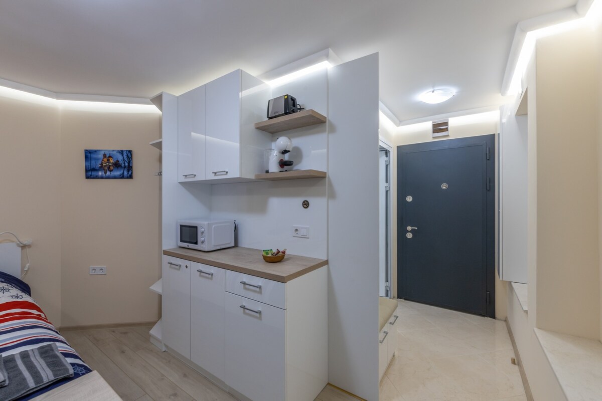 在我們告訴您裡面有什麼之前,讓我們告訴您外面有什麼-大海和海洋花園,瓦爾納最大的公園。一旦您走出公寓,您會感覺到腳下的沙子,邀請您去游泳和曬日光浴。如果這還不夠,公園就在您周圍,可以放鬆的早晨或下午散步。如果您正在尋找難忘的派對之夜,所有酒吧、俱樂部和餐廳也都在那裡。你只須過馬路就行了。