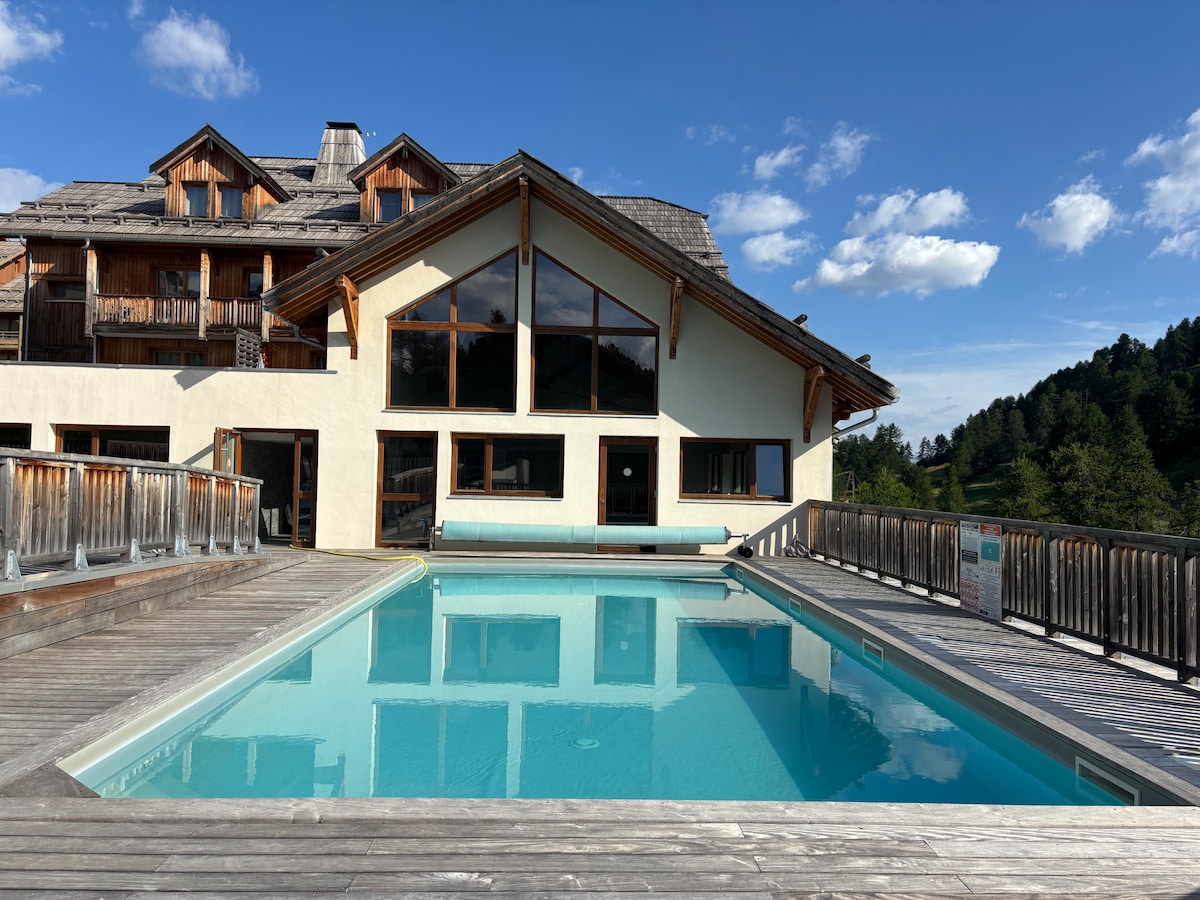 這間家庭公寓位於山坡上,靠近瓦爾斯阿爾巴內住宅區的所有便利設施。 Point Show side是度假村夏季和冬季欣賞山景的最佳位置。 設備齊全,配備了您需要的所有舒適設施,包括配備家具的滑雪室、私人地下停車場、可使用住宅的溫水泳池、露台,可欣賞山坡和森林的美景。