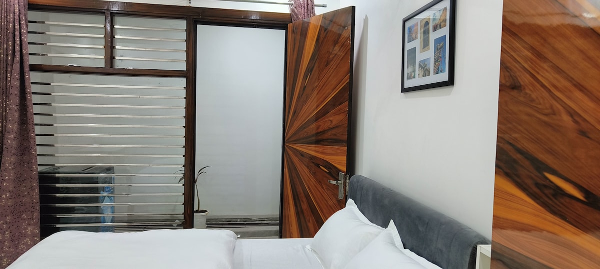 入住我們寬敞的2BR Park-View Retreat ,距離機場8.5公里,乘坐地鐵15分鐘即可抵達。享受通風的陽台、公園景觀、桃花心木/木製床、設備齊全的廚房、高速 Wi-Fi、智慧電視、免費洗漱用品和當地推薦。享用家常菜餚,探索附近的市場和商場,並在寧靜的慢跑步道上放鬆身心。體驗頂級的待客之道,提供彈性入住/退房、洗衣服務和可選的機場接送服務。立即預訂,享受難忘的德里住宿體驗!