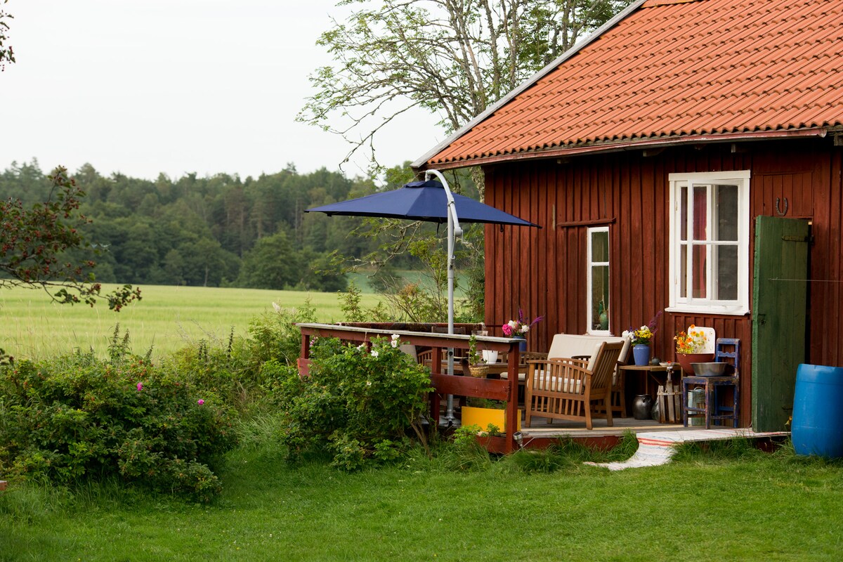 Bjørnebo is the cozy restored barn on a small farm. 2 rooms div. by curtain. Incinerating toilet + «outdoor» shower with hot water. New pump with good pressure. Has to be connected with the main house when in use. Kitchen-corner. Water provided from main house .2 twin beds + 1 extra single. Homemade, tasty meals on request. Bedlinen (SEK 100 pr. set) for rent. Free towels. Lovely, safe garden. Weak Wifi in the barn. Better outside . Extra: We wash your dishes. Use of washing machine. Agnes
