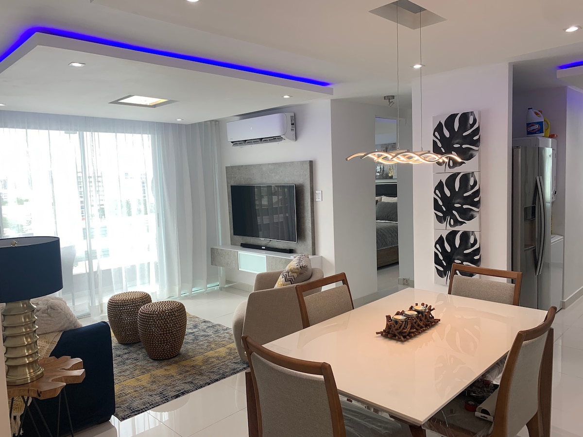 位於市中心的漂亮公寓。距離多拉多海灘 3 分鐘,距離維加阿爾塔海灘 10 分鐘。附近有飯店、餐廳、超市、藥局、銀行、醫院和醫療機構。距離電影院 5 分鐘路程,附近還有其他夜間娛樂活動。提供 24 小時保安和出入控制。它位於一個人口密集的區域,距離前往聖胡安的高速公路 10 分鐘。