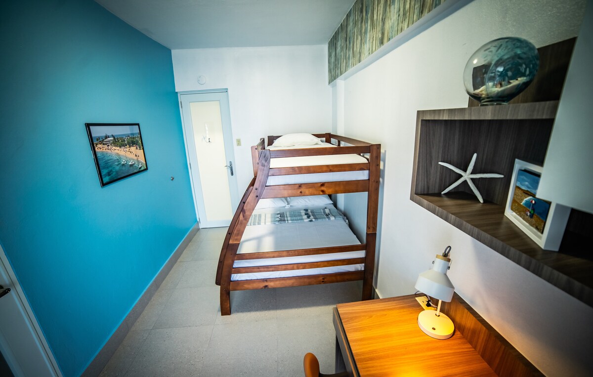 公寓設有一間大臥室,配有一張標準雙人床和一張上下鋪。 適合與兒童一起旅行或情侶入住。 公寓內有一間全套衛浴,露臺上有一間半衛浴、一個小型客廳區域、用餐區域和一個小型廚房。 距離新港海灘(Puerto Nuevo Beach)僅5分鐘路程。 設施包括空調、Wi-Fi和兩輛車的停車位。 靠近Wilma Vázquez醫院、藥店、超市和餐廳。