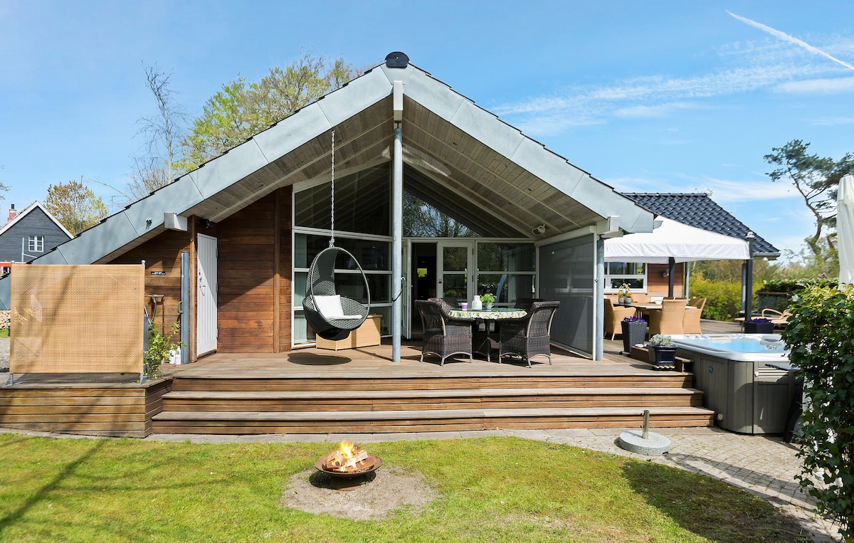 位於Hornsherred Tørslev Hage的大型度假屋。16人+2嬰兒。 從起居餐廳可欣賞羅斯基勒峽灣的美麗景色。 同樣,從溫室和大型燒烤空間欣賞美景。 有一個大型停車位和一個獨立的草地,有很多活動。 房子安裝了通風系統。熱水浴缸配有大型暖氣。 樓下有乒乓球、額外的廚房、投影機 100英寸電視連線程式。