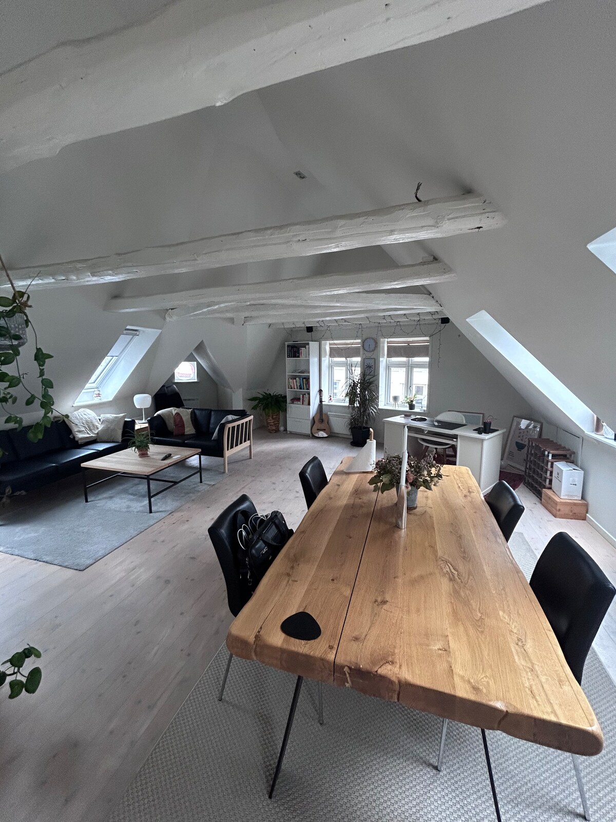 Very spacious and stylish apartment, fully equipped for long stays. The apartment is on 2nd floor in traditional old building. It has high ceiling with exposed brick wall in living room. • Walking Street - 1 min • Social Dining - 1 min • Bus stop - near apartment • Grocery Store - right in front • Train Station - 10 min • Parking House - right in front • Nearby - Art Museum, Spinderihallerne, Sheesha, Bryggen Mall, Beach, Deer Park, Library Request ID if you are using airbnb for 1st time.