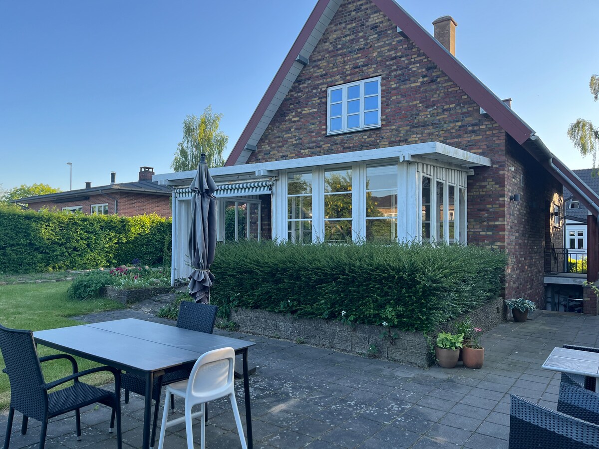 明亮而寬敞的兩層別墅,配有漂亮的封閉式花園和車棚。 入住這間位於市中心的房源,您的家人將離所有地方都很近。 不到30分鐘即可抵達Kolding、Vejle、Legoland和Fredericia。 距離雜貨店100米,一周中每天開放。工作日前往Kolding、Vejle和Billund的巴士站100米。 在私人充電站為電動車充電。