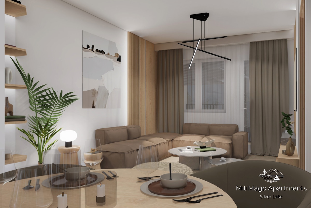 「Tramonto」是一間全新的雙床公寓,位於Srebrno Jezero湖畔。它配有雙人法式床、可伸縮沙發、配備冰箱、熱板、水壺和所有相關配件的全功能廚房、浴室、衣櫃和直接俯瞰湖泊的露臺,以及中央步行道。大樓正前方就是主要海灘,距離入口30公尺內就有迷你市場、美食攤位和著名的「海灘酒吧」俱樂部。還有免費停車位!