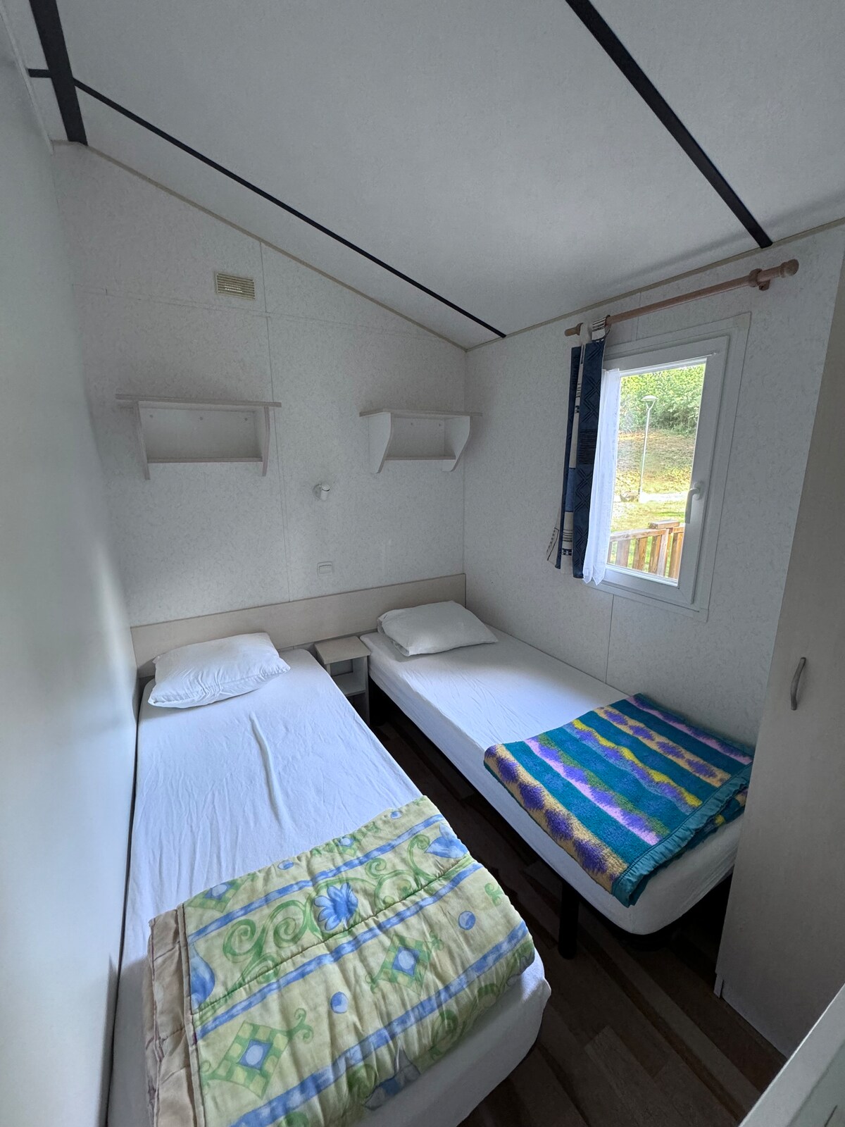 2間臥室的移動房屋 - 1張父母牀, 140x190張牀 - 2張單人牀 -沙發上可以上下舖,並加一張嬰兒牀。 -有蓋的戶外露臺,配有花園家具。2個日光浴。 設備齊全,可容納4-6人。 房源距離海灘300公尺。 距離便利商店、酒吧、餐廳、麵包店900公尺。 家庭營地,有很多活動。 2個溫水有蓋泳池, 1個室外泳池。多個滑梯。
