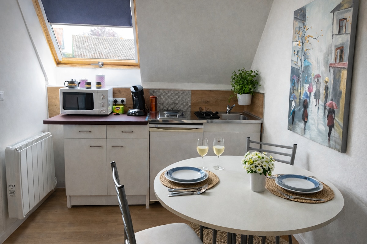 彈性入住時間 50平方公尺的公寓,位於Avesnois、Jenlain門口的小村莊。 在Valenciennes/Maubeuge軸上。 公寓位於村莊的中心,您可以步行使用所有便利設施:麵包店、肉店、餐廳、蔬果店。 若要進入住宿,您需要爬樓梯 公寓包括:一間臥室、一間配有沙發床的餐廳、一間設備齊全的廚房:洗碗機、烤箱、微波爐、冰箱。