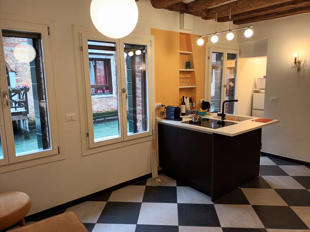 整套公寓採用威尼斯風格裝飾,位於1600年代的私人宮殿,景觀迷人。 公寓位於一樓,有一間大臥室,配有一張雙人床。 浴室寬敞,配有大淋浴間。廚房設備齊全,配有冰箱、烤麵包機、水壺和Nespresso咖啡機。 入口通向一個非常大的起居區域,可欣賞運河景觀,您可以坐下,在享用一杯葡萄酒的同時基本上觸摸水面。