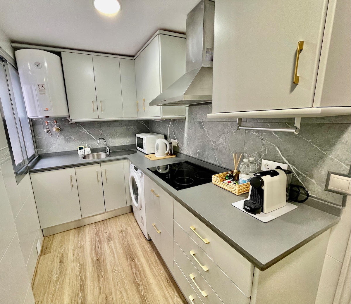 聖週特惠。 公寓空間包括一個客廳(沙發床 150 公分)、一間主臥室(雙人床 150 公分),從這裡可以看到清真寺,一間次臥室(兩張單人床 105 公分)、廚房和獨立浴室。適合 6 人入住。 廚房配備了所有必需品,以方便房客的住宿,包括:冰箱、微波爐、洗衣機、Nespresso、烤麵包機和各種廚房用具。
