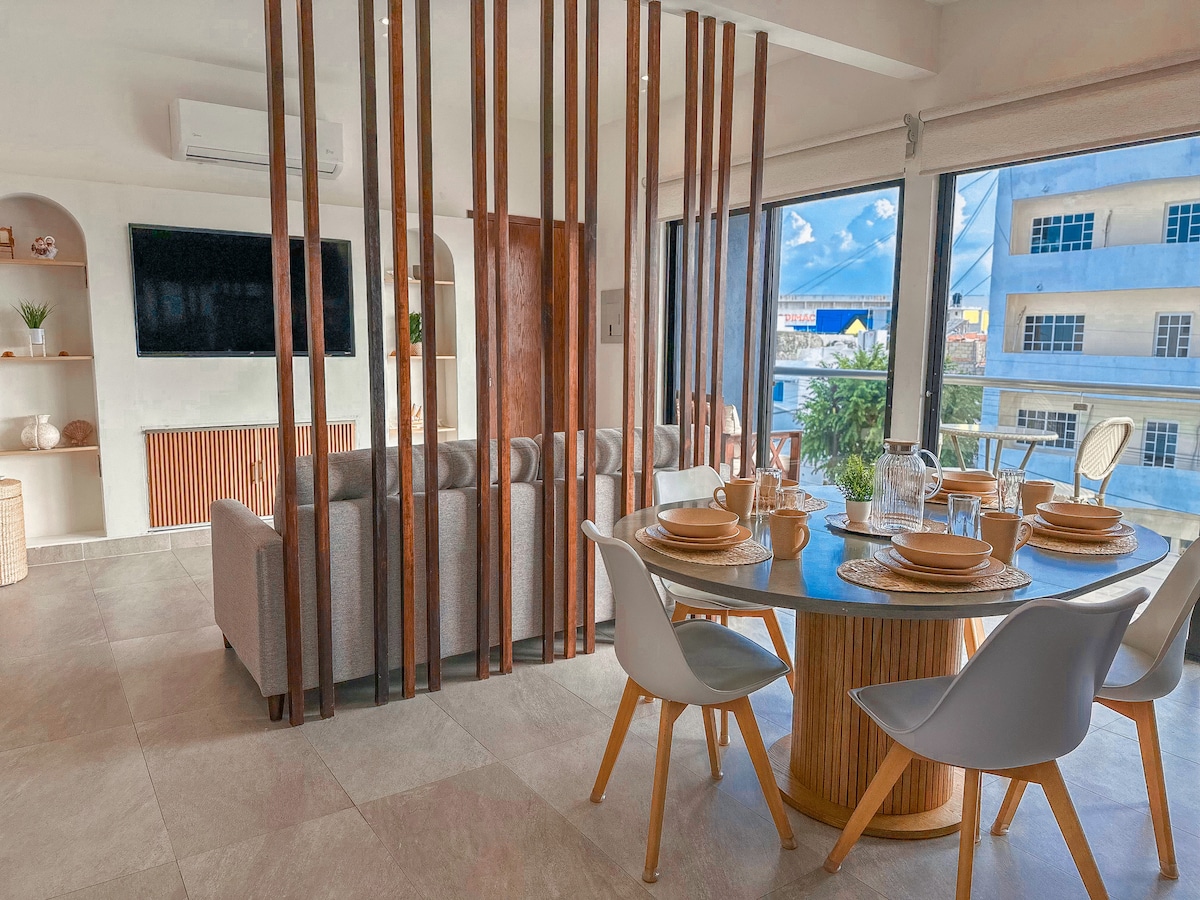 Relax in this peaceful and stylish space, perfect for up to 4 guests (max 6 with extra fee). Just one block from the beach and boulevard with restaurants and bars nearby, and a mall 5 min away. Features 2 bedrooms, 2 single beds, full kitchen, living room, dining area, pool next door with partial ocean view, A/C and WiFi.