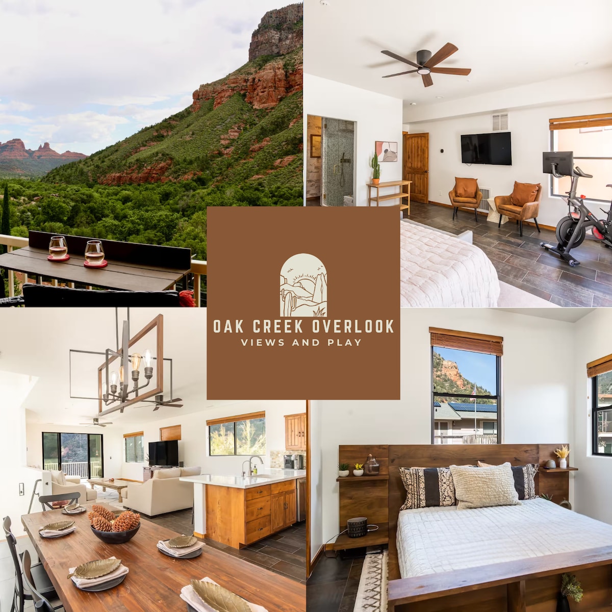 🛏 Sleeps 10 | 🛁 3 Bathrooms Key Amenities: 🏜 3 Scenic Decks – Relax with beautiful Oak Creek Canyon views 🎮 Arcade Game Room – Ping pong, arcade machines, darts & pop-a-shot 🏋️ Full Gym + Peloton – Squat rack, dumbbells & TRX 🔥 Fire Pit + Grill Deck – Perfect for evening hangouts 📺 75” Living Room TV – Great for movies and game nights 👨🍳 Fully Equipped Kitchen – Instapot, air fryer, Ninja blender & more 👶 Family-Friendly Setup – Baby gates, pack-and-play, toys, games, and more!