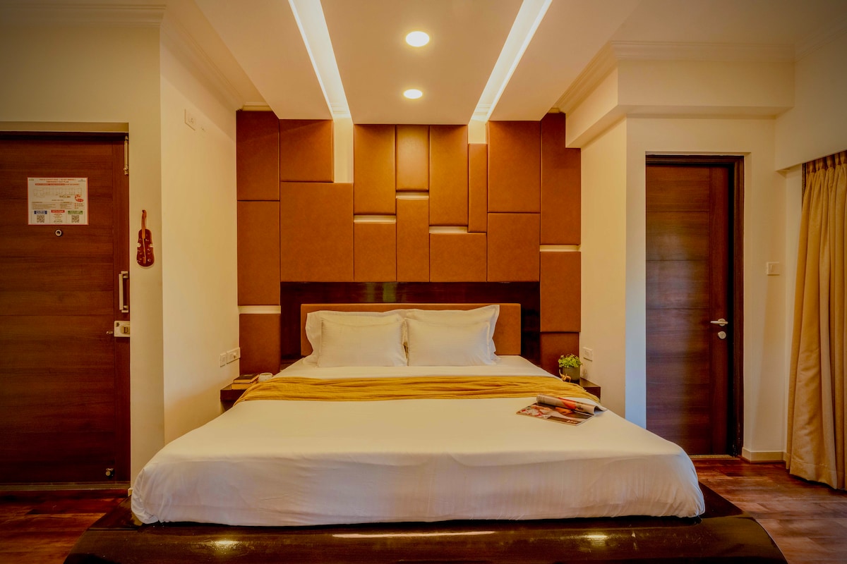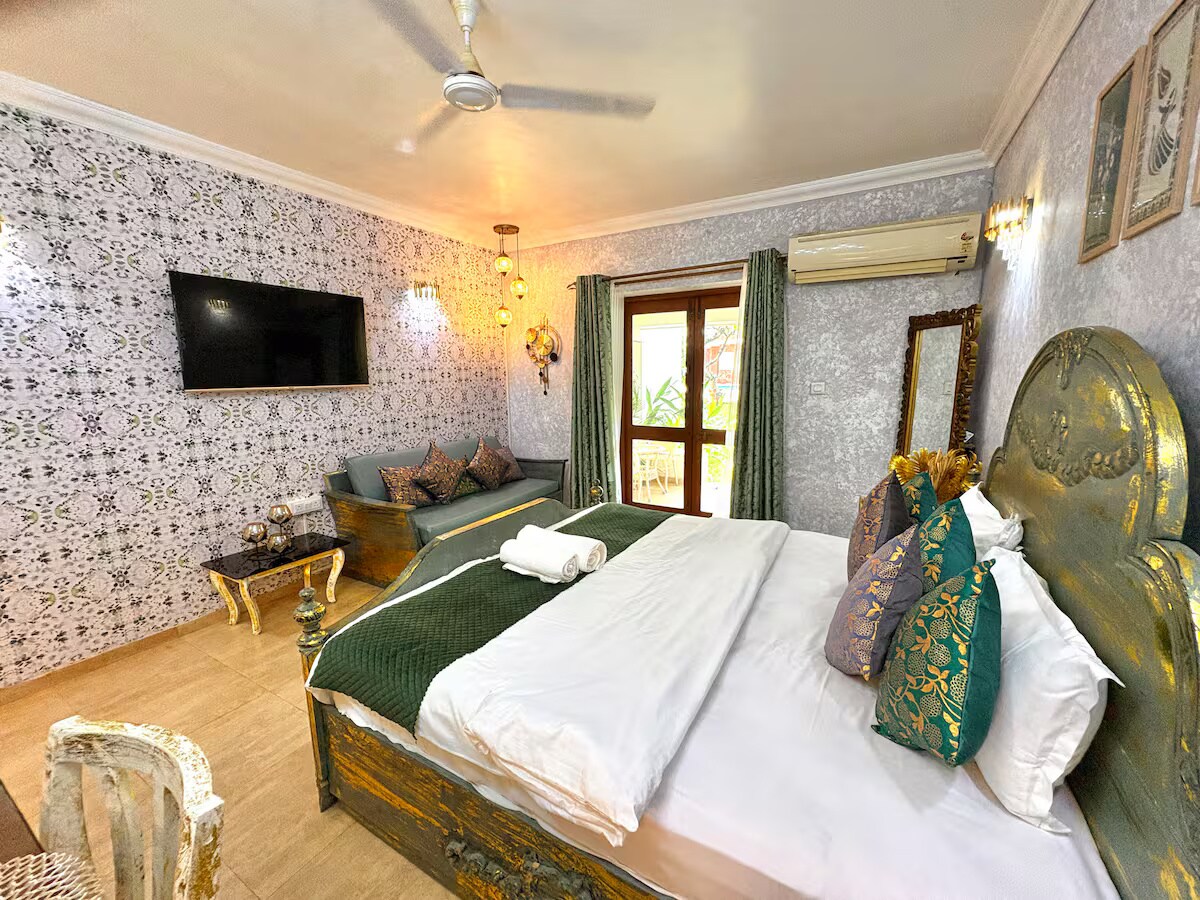 在巴加、卡蘭古特體驗果阿邦的活力夜生活! 距離巴加海灘和蒂托俱樂部僅7分鐘車程。 享受: - 2 個泳池和按摩浴池 -配備蒸汽和桑拿的最先進健身房,促進健康 -有趣的遊戲室,配有泳池、卡龍等 -寧靜的景觀花園,可供放鬆 套房特色: -光線充足的豪華客房 -豪華特大床和豪華床單 -私人有蓋停車位 -配有熱門OTT平台的LED電視,可供娛樂 -快速 WiFi,連線順暢 -逆變器電源備份