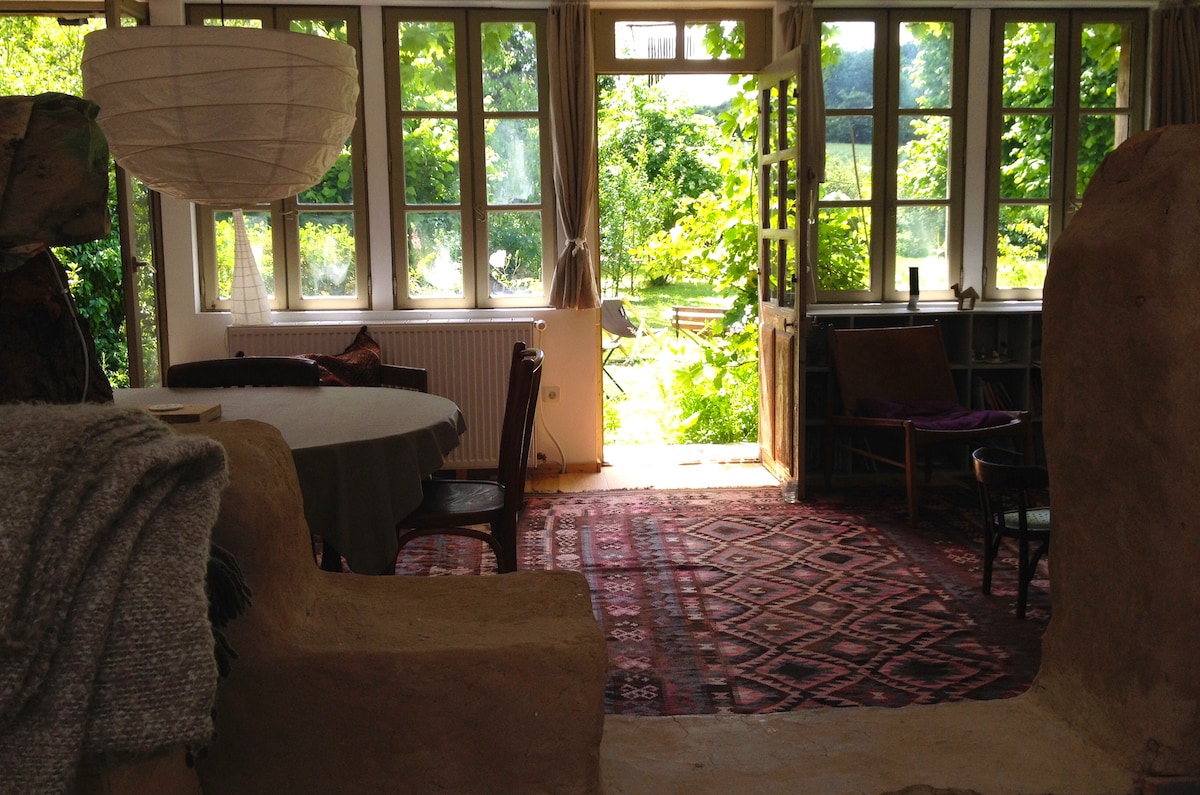 兩間全新翻修的客用住房位於一個美麗的綠地公園內,非常適合與家人或朋友聚會。「夾層套房」有兩張雙人床、一個設備齊全的廚房和一張可容納8人的大桌子,「工作室小屋」位於50公尺外,可容納4名成人和1名兒童。大花園、烤肉和烤箱。可選擇自助早餐或早午餐(需提前預訂,價格請洽詢)。