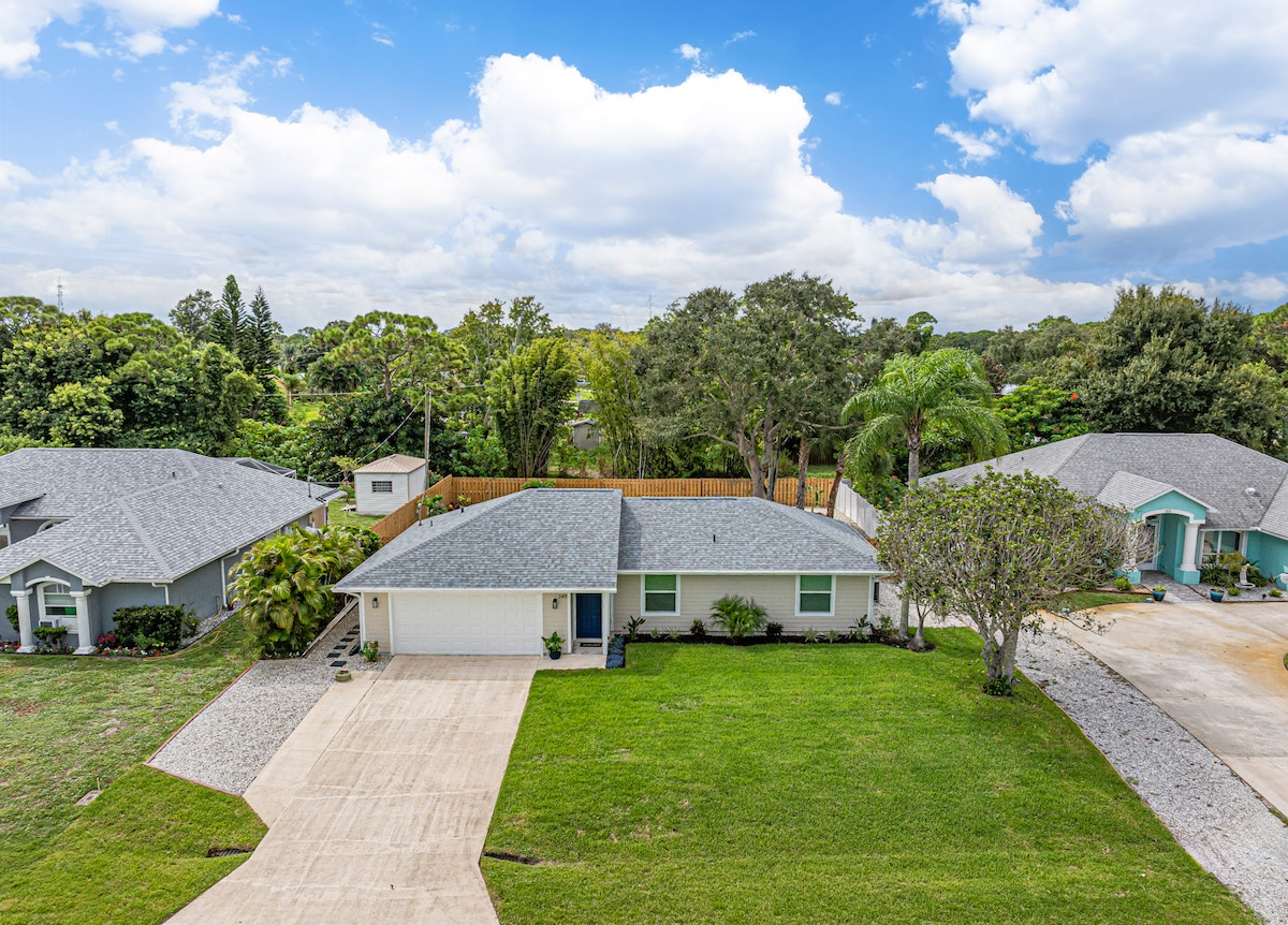 在陽光明媚的佛羅里達州南部的美麗房源享受輕鬆的住宿體驗。 距離海灘、購物和許多自然公園只有很短的車程。 開車觀賞海牛、大都會棒球隊、參觀當地釀酒廠,或入住並享受溫水泳池,並在水療中心放鬆身心。 每間臥室、辦公室和家庭房都有智慧電視。高速 Wi-Fi 可遠距工作。 飲料站、撞球桌和運動設備。泳池和水療區域,配有烤架和火坑。步行即可抵達便利商店和餐廳。