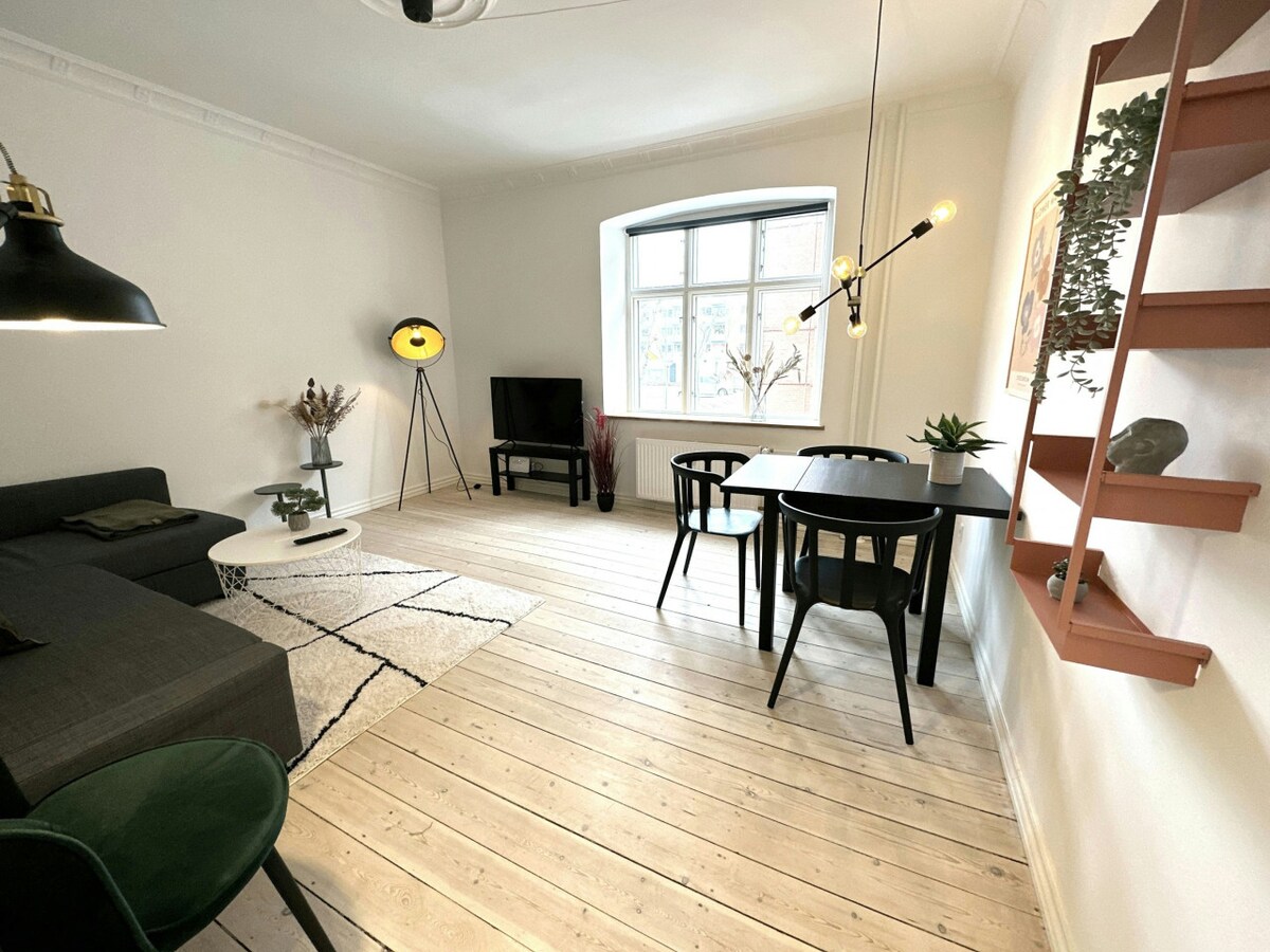 Spacious 1-bedroom apartment in Randers, perfect for long stays. Comfortably fits up to 4 guests and includes a full kitchen, cozy living room, and shared laundry. Close to top attractions, dining, and outdoor activities.