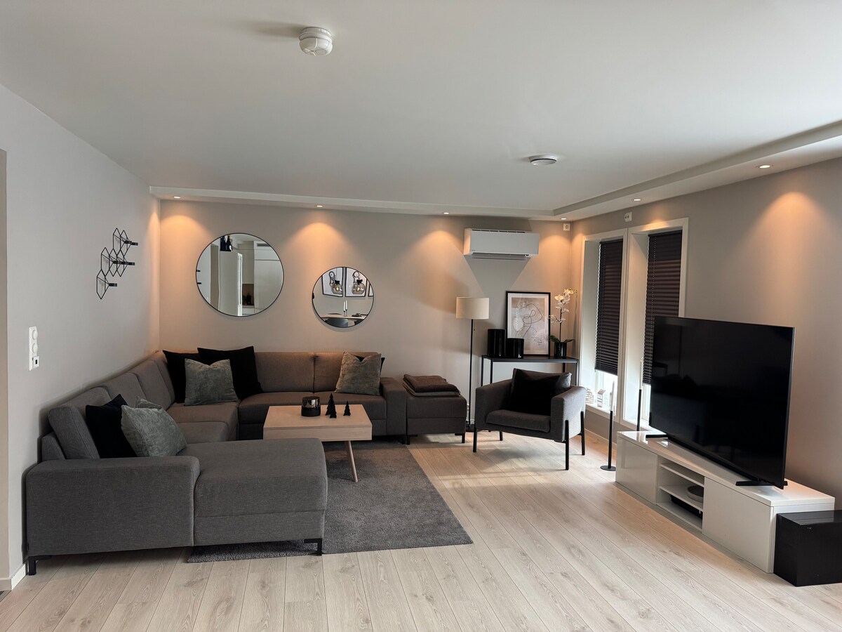入住這間位處中心地段的房源,全家到哪都方便,靠近勞福斯市中心,步行15分鐘即可抵達商場、巴士、火車和咖啡廳。 夏季/冬季徒步旅行機會。距離Totenbadet/水上公園不遠。開車15分鐘即可抵達約維克。 2 間臥室,1 間有 2 張 120 公分的床,1 間有 1 張 160 公分的雙人床。1 間開放式辦公室、私人螢幕和印表機。 網路。浴室-洗衣機、淋浴間、廁所、暖氣電纜。 廚房。配有電視的客廳。 用餐區和休息室在大門廊外。停車棚。可以攜帶寵物。