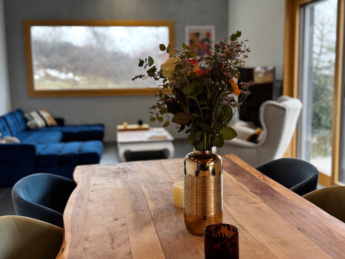 位於蒙特勒高地的現代5間臥室別墅,可欣賞日內瓦湖的美景。 寬敞明亮的客廳,有大教堂天花板、設備齊全的廚房、花園、凸窗。 高級寢具、WiFi、智慧電視、私人停車位。 非常適合家庭:安靜、設計、空間和自然。 距離市中心10分鐘。 優雅、舒適和高山寧靜之間的卓越住宿。