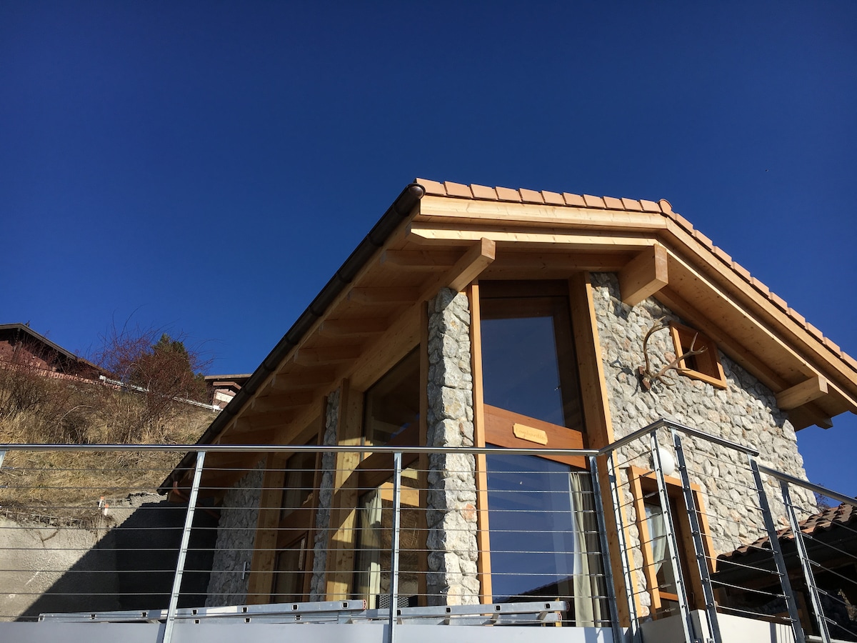 這間小型私人瑞士小木屋是舒適的度假勝地,適合一或兩位房客入住。陽臺可欣賞羅納河谷和瓦萊斯的瑞士阿爾卑斯山的壯麗景色。 非常適合自然愛好者或那些只想遠離放鬆身心,呼吸瑞士山區空氣的人。 小木屋是冬季山地步行或徒步旅行、騎自行車、雪鞋或越野滑雪的出發點。開車約30分鐘即可抵達滑雪場和溫泉浴場。